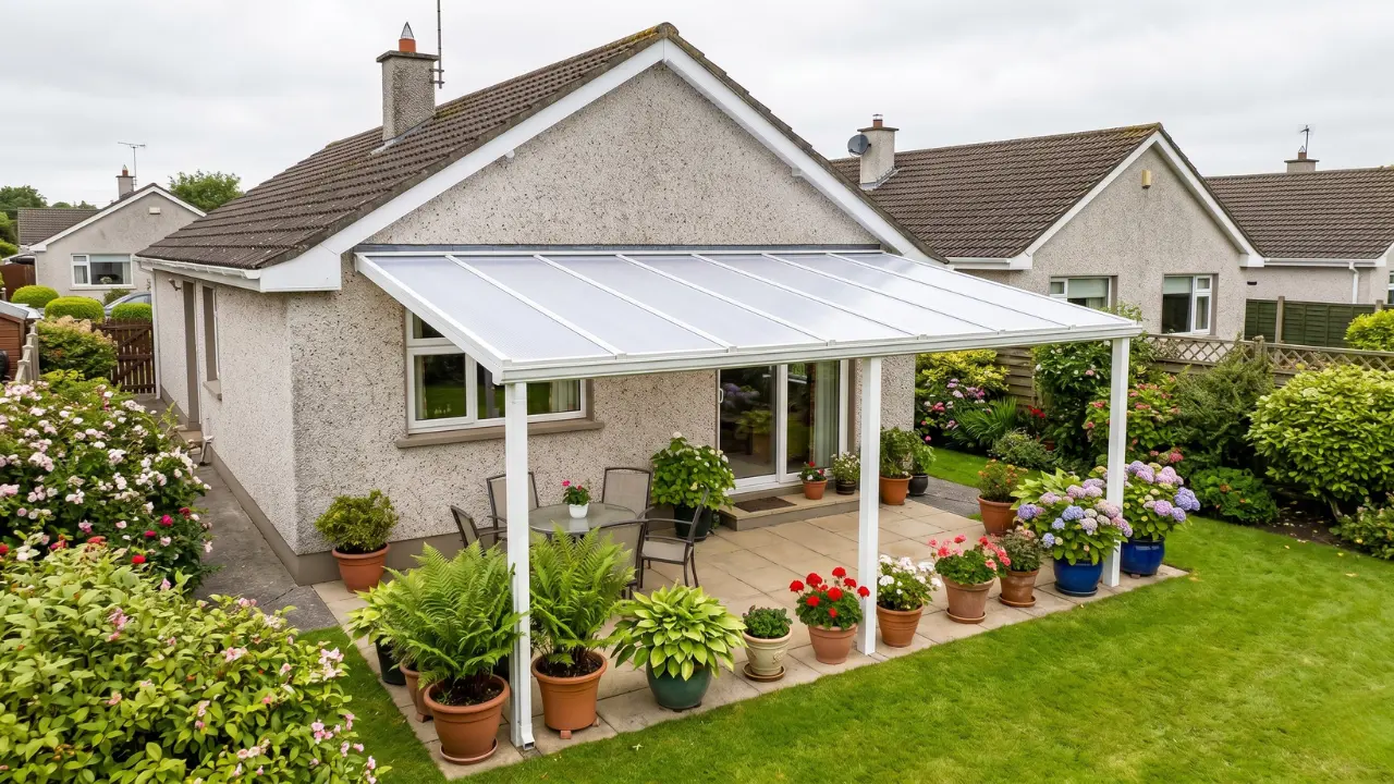Most Irish homeowners go for either a lean-to canopy fixed to the back wall of the house, a freestanding pergola with partial cover, or a fully glazed veranda-style structure. Each option suits different budgets, garden sizes and house styles. The right choice depends on how much shelter you want, what your property looks like, and how much you’re willing to spend.
